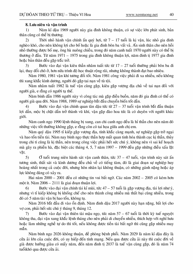 • Tử Vi & Tứ Trụ: Phân tích lá số Tử Vi, luận giải Tứ Trụ (Bát Tự) chi tiết, giúp bạn hiểu rõ về tính cách, vận trình cuộc đời, các giai đoạn thăng trầm và đưa ra định hướng phát triển tốt nhất.