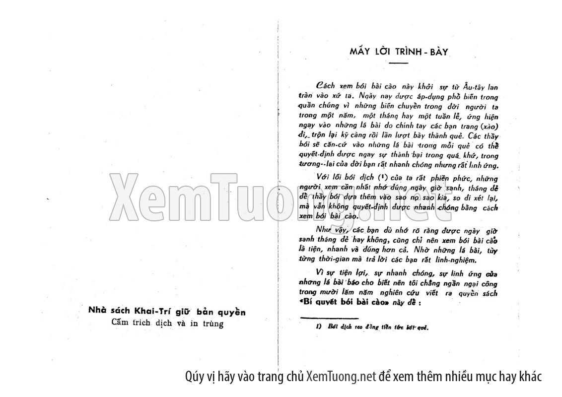 Cuốn sách "Bí Quyết Bói Bài Theo Khoa Học Rất Linh Nghiệm" của soạn giả Lê Đăng hướng dẫn chúng ta một cách chi tiết cách xem bói bài tây một cách hữu hiệu, với cuốn sách Bí quyết bói bài này các bạn đọc có thể giải đáp một cách có khoa học và chính xác vận mệnh, rủi ro của mình, cũng như của người xung quanh.