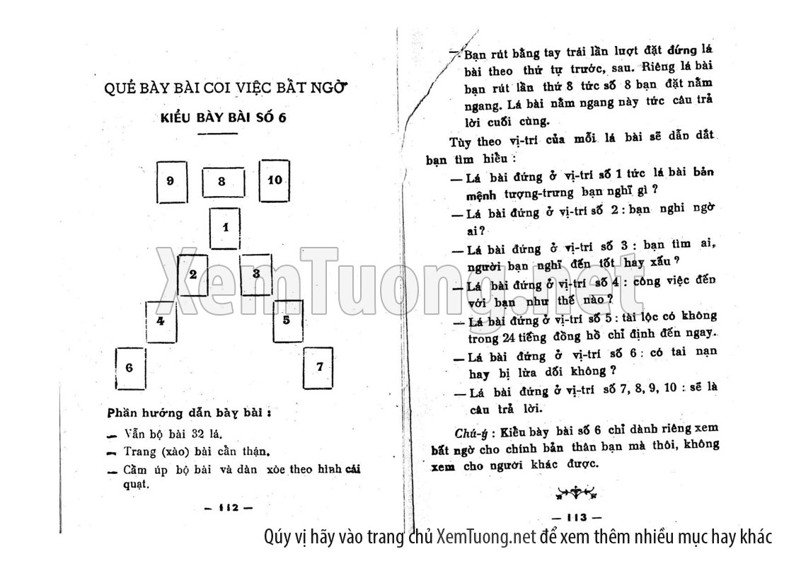 Một lá bài, tức lá bài thứ 31 tượng trưng cho người xem, còn lá bài còn lại tức lá bài thứ 32 tượng trưng cho vợ hay chồng. Nếu chưa có chồng hoặc vợ thì lá bài thứ 32 có thể tượng trưng cho người yêu của người xem.