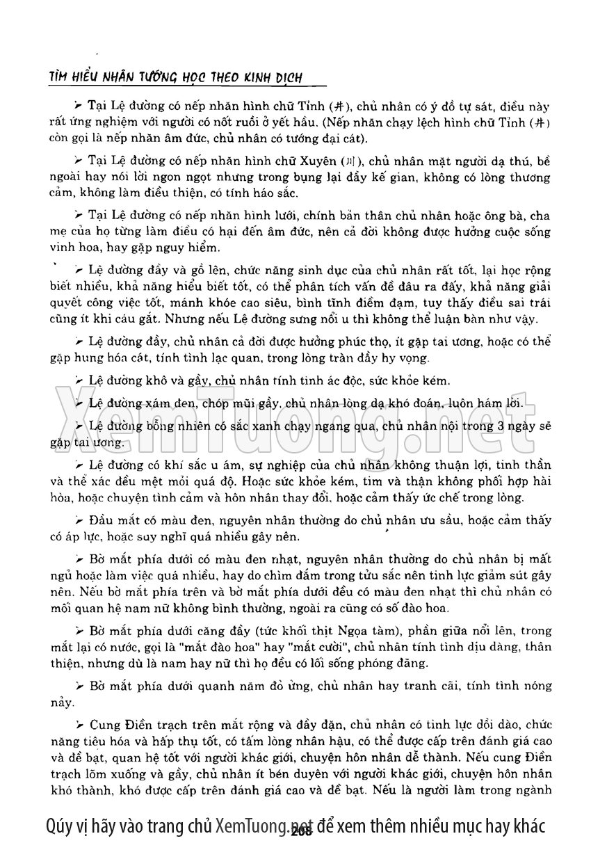 Sách "Tìm hiểu nhân tướng học theo kinh dịch" của tác giả Thiệu Vĩ Hoa cho chúng ta một cách nhìn toàn diễn về bản chất của thuật nhân tướng. Hầu hết chúng ta khi nói đến tướng thuật đều nghĩ đến khuôn mặt. Tuy nhiên như vậy có nghĩa là chỉ quan tâm đến phần hình dạng bên ngoài mà chưa chú trọng đến bản chất bên trong của thuật nhân tướng. Tướng thuật là nhìn tướng một người mà đoán được tuổi thọ, tài lộc, vận hạn... của họ, thậm chí của tổ tiên, cha mẹ, anh chị em trong gia đình người đó.