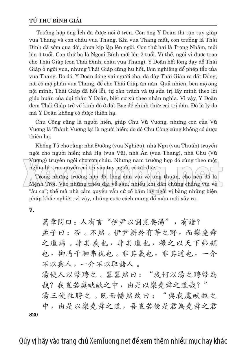 Sách "Tứ thư bình giải" của tác giả Lý Minh Tuấn nhằm cho chúng ta thấy được toàn bộ quá trình phát triển và trải qua thăng trầm của bộ tứ thư. Bộ sách này của Nho giáo ra đời cách nay khoảng hơn 2.000 năm, đã trải qua bao sóng gió theo những giai đoạn thăng trầm của lịch sử Trung Hoa. Lần thì bị Tần Thủy Hoàng đốt, lần thì bị tiêu tan trong các cuộc nội chiến triền miên của Trung Hoa. Do vậy khó tránh được nạn "tam sao thất bản". Đến đời nhà Tống, bộ sách này mới được các danh Nho tu chỉnh.
