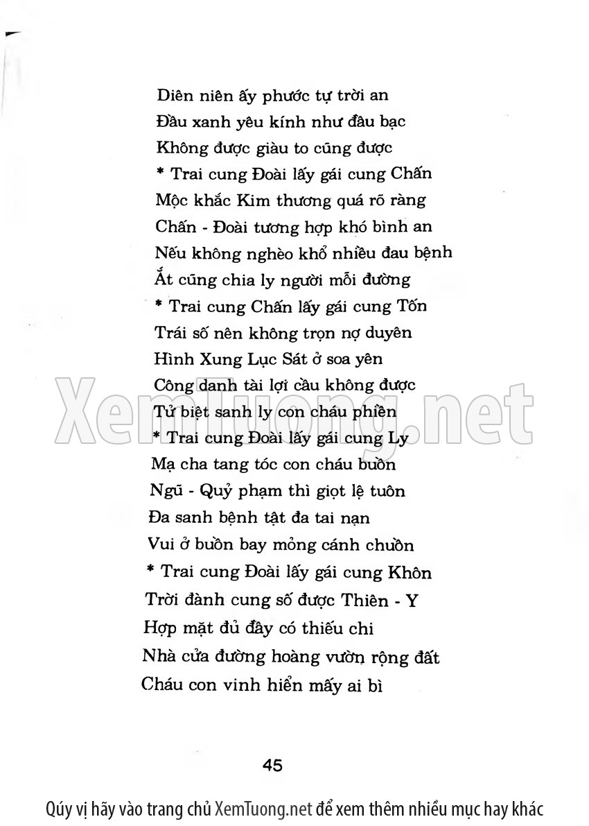 Sách số Coi tuổi làm nhà và Dựng vợ gả chồng giải thích một cách kỹ lưỡng về tuổi kết hôn đẹp và những người hợp tuổi nhau, minh chứng cho điều đó là cuốn sách hướng dẫn xem tuổi cưới vợ do tác giả Huỳnh Liên đã viết rất cặn kẽ về ngũ hành tương sinh, ngũ hành tương khắc và tuổi tứ hành xung.