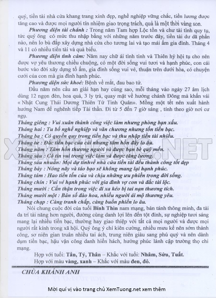Có 3 phần xem tử vi năm Ất Tỵ 2025. Phần 1 là Thái Ất tử vi năm Ất Tỵ 2025 do Vương Dung Cơ (TQ) luận giải, Phần 2 do chùa Khánh Anh biên soạn, phần 3 là Tử Vi 12 tháng năm Ất Tỵ 2025. Qúy vị có thể chọn xem tất cả 3 phần rồi tổng hợp lại, những câu thường lập lại nhiều có khả năng sảy ra hơn.