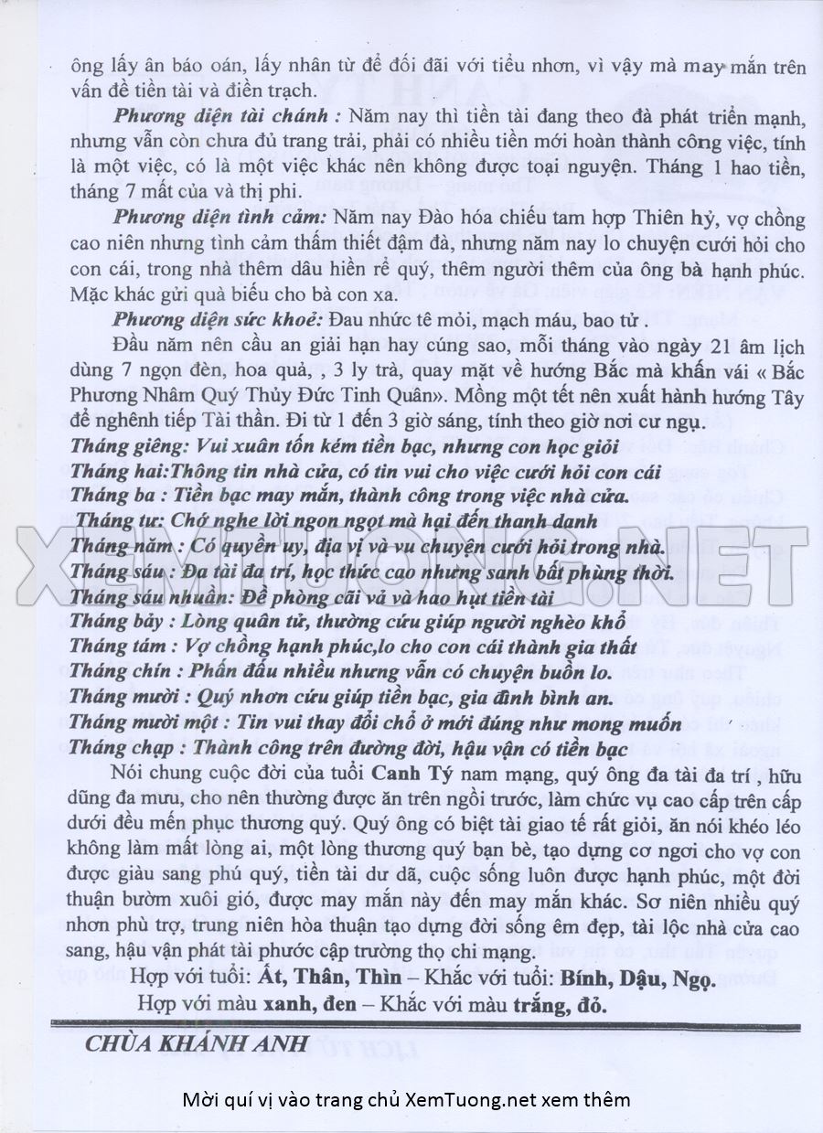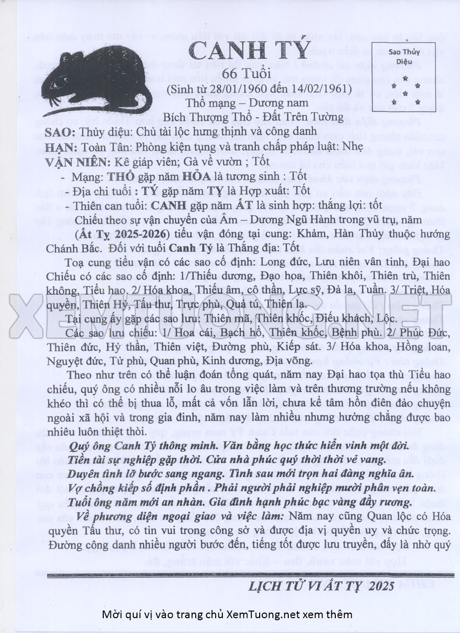 Tử Vi Năm Ất Tỵ 2025 mạng nam CANH TÝ