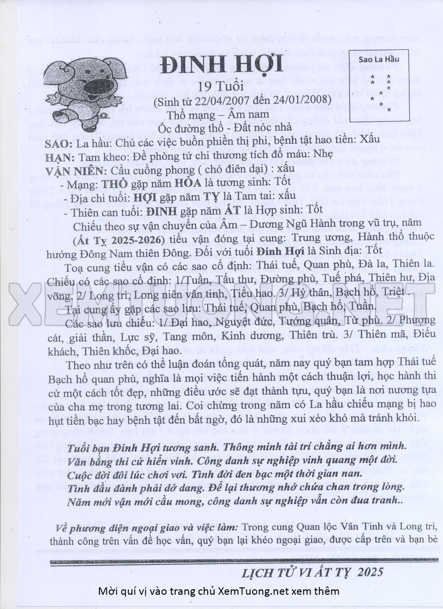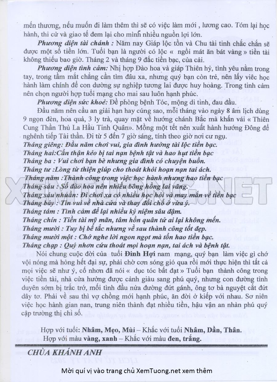 Tử Vi Năm Ất Tỵ 2025 mạng nam ĐINH HỢI