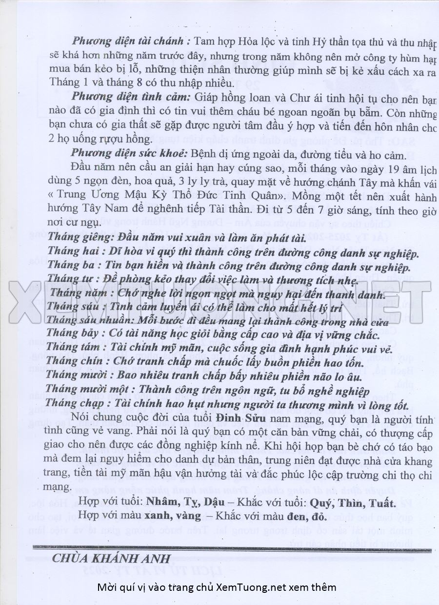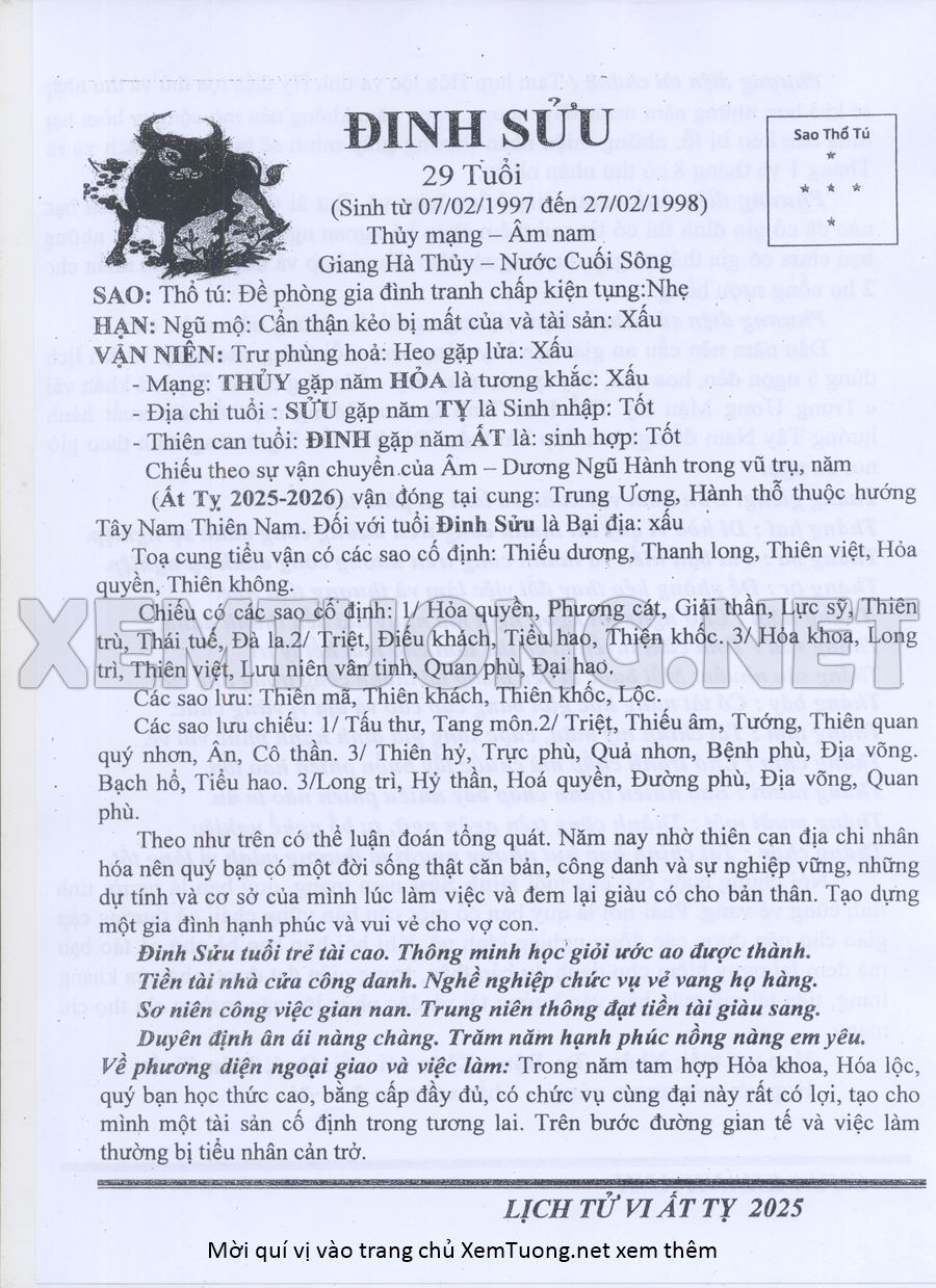 Tử Vi Năm Ất Tỵ 2025 mạng nam ĐINH SỬU