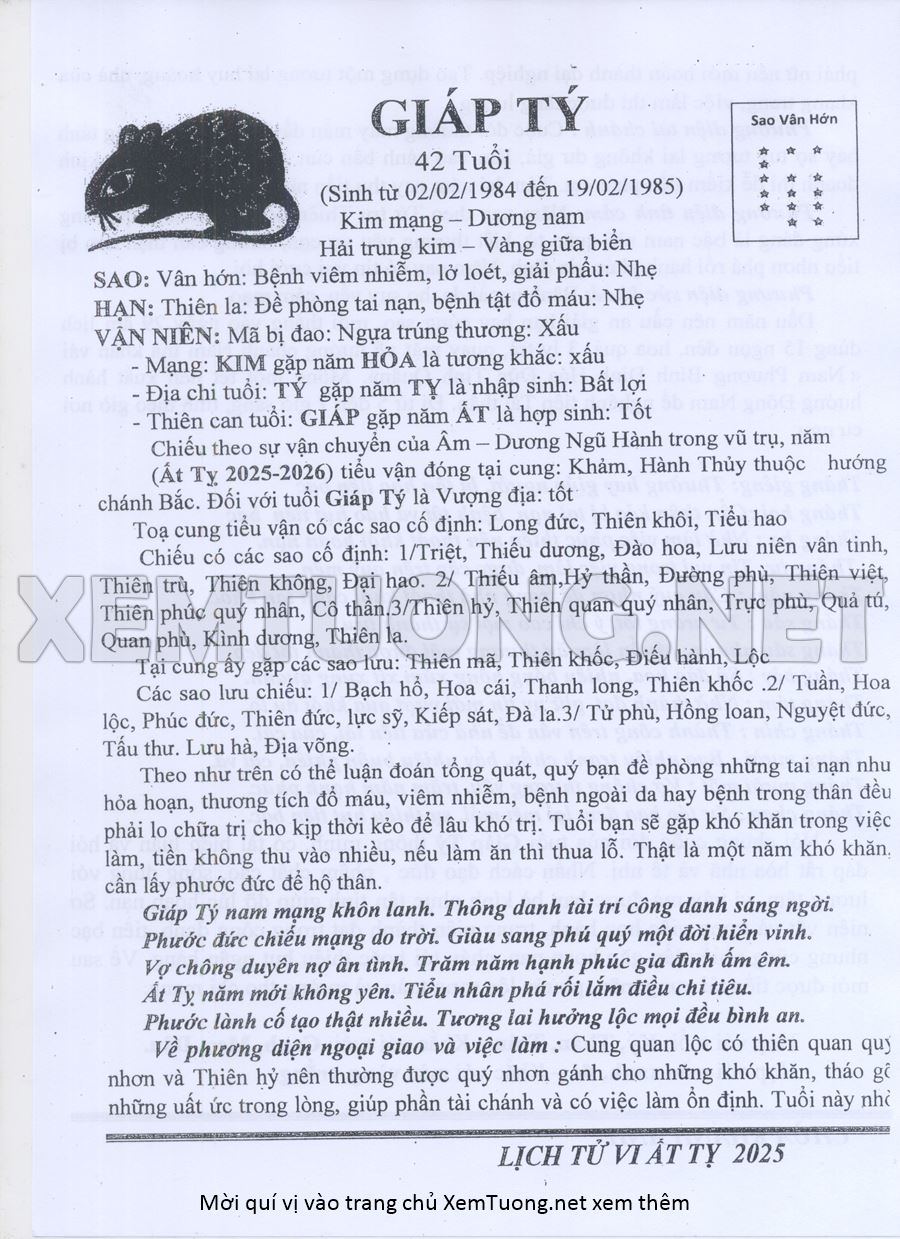 Tử Vi Năm Ất Tỵ 2025 mạng nam GIÁP TÝ