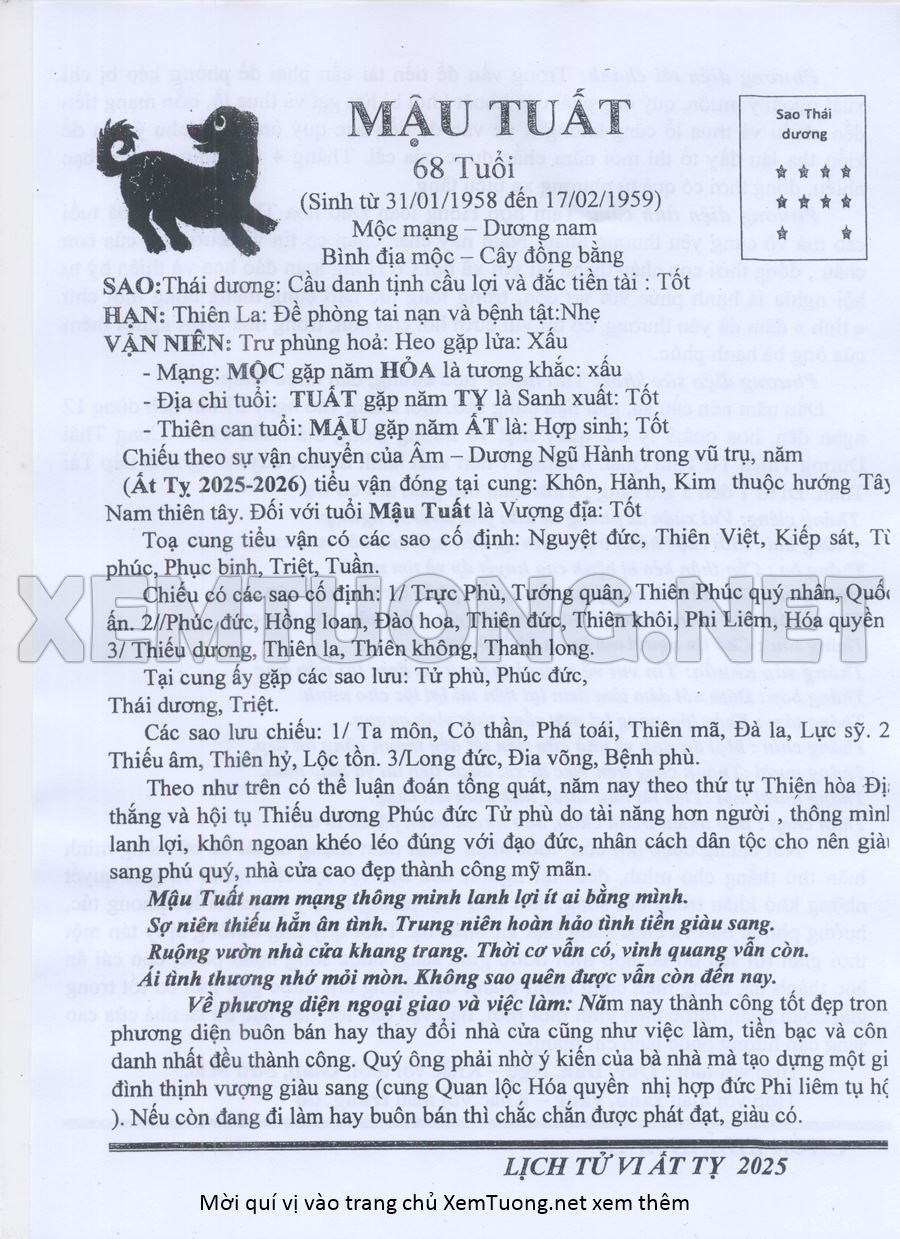 Tử Vi Năm Ất Tỵ 2025 mạng nam MẬU TUẤT
