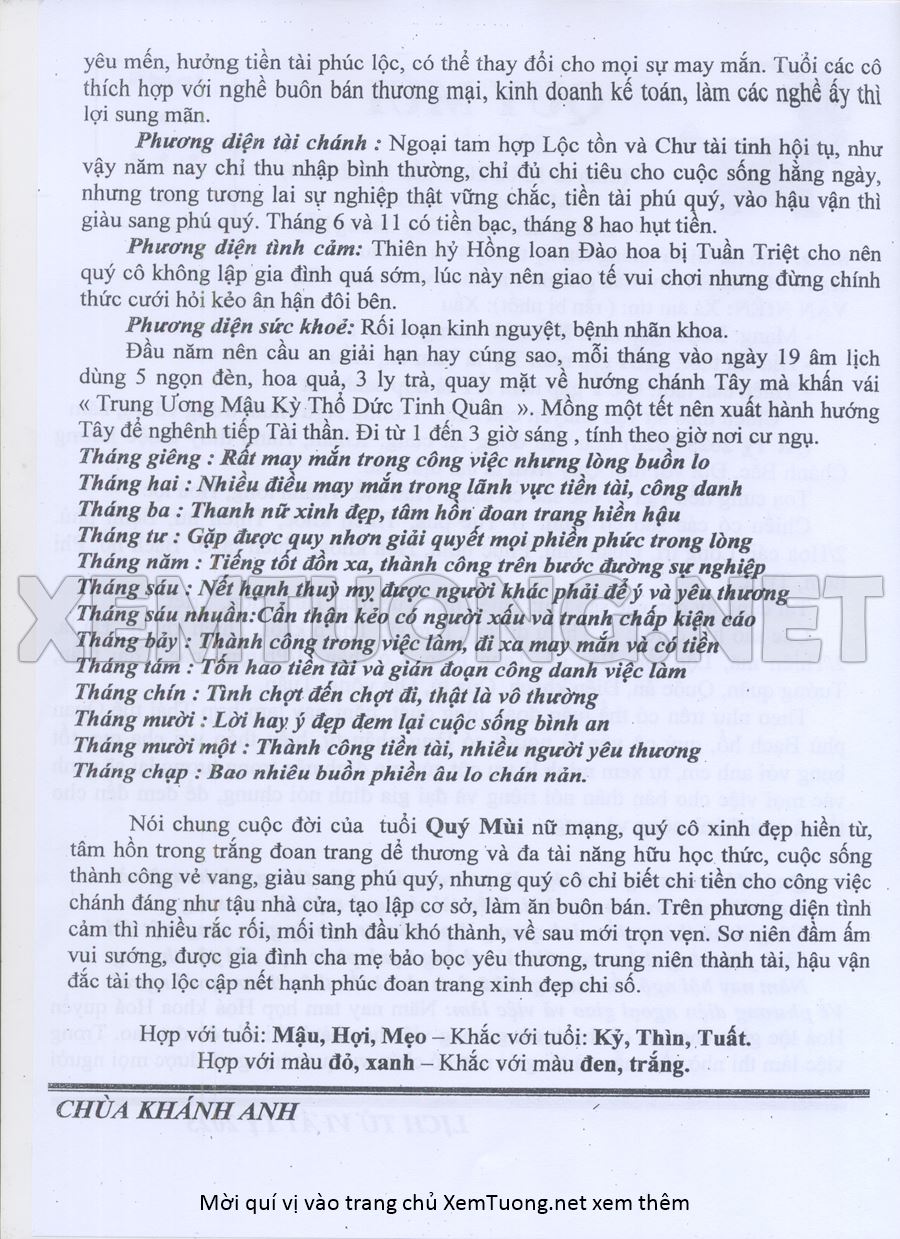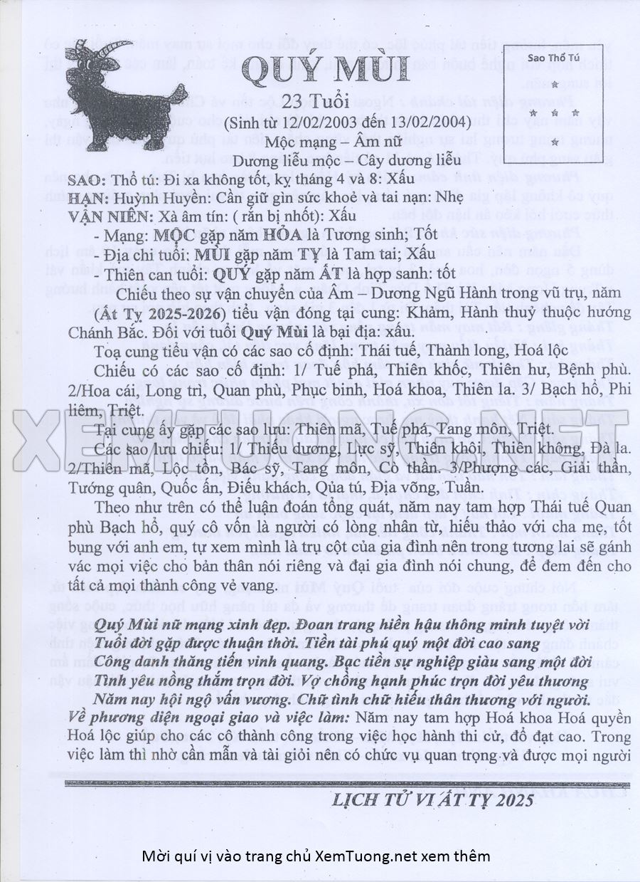 Tử Vi Năm Ất Tỵ 2025 mạng nữ Qúy Mùi