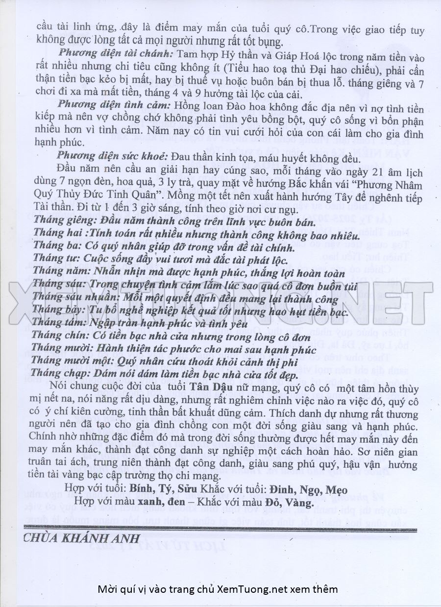 Tử Vi Năm Ất Tỵ 2025 mạng nữ TÂN DẬU