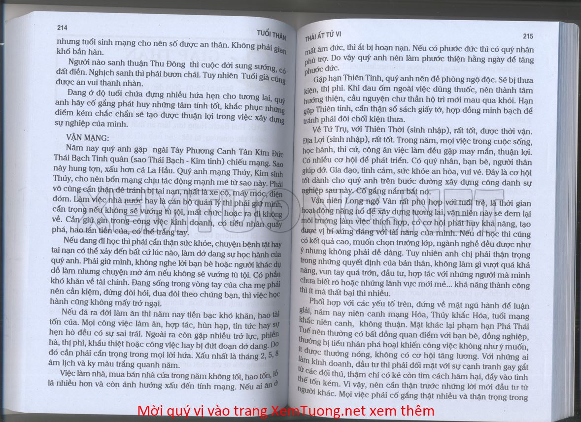 (Lưu ý: Thái Ất Tử Vi được chúng tôi scan từ sách, do đó mỗi tuổi sẽ có nhiều trang, quý vị xem xong hãy nhấn vào trang tiếp theo để xem hết phần tuổi muốn xem. Nếu quý vị xem bằng điện thoại thì hãy kéo qua lại để xem phần bị khuất.)