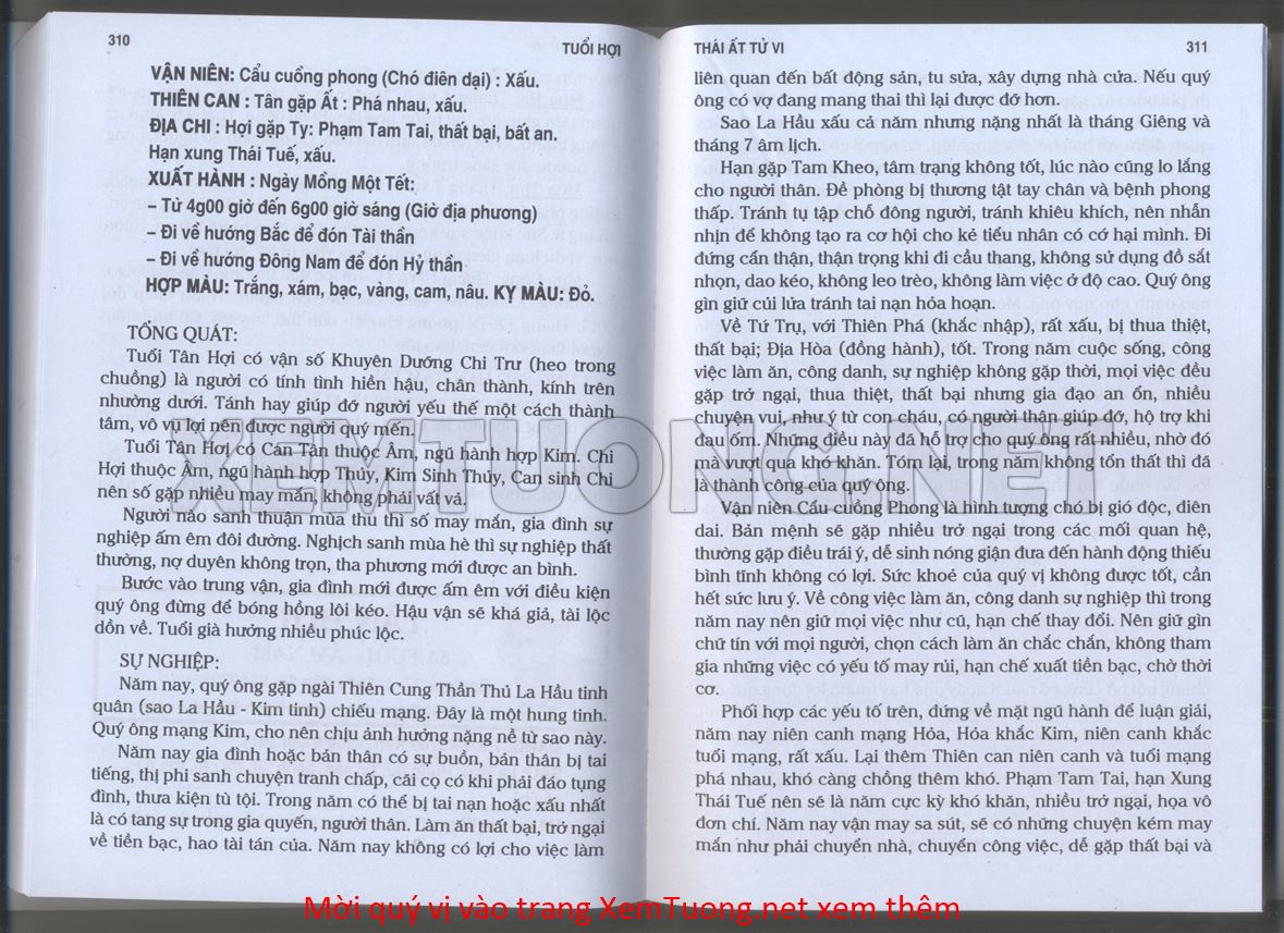 (Lưu ý: Thái Ất Tử Vi được chúng tôi scan từ sách, do đó mỗi tuổi sẽ có nhiều trang, quý vị xem xong hãy nhấn vào trang tiếp theo để xem hết phần tuổi muốn xem. Nếu quý vị xem bằng điện thoại thì hãy kéo qua lại để xem phần bị khuất.)