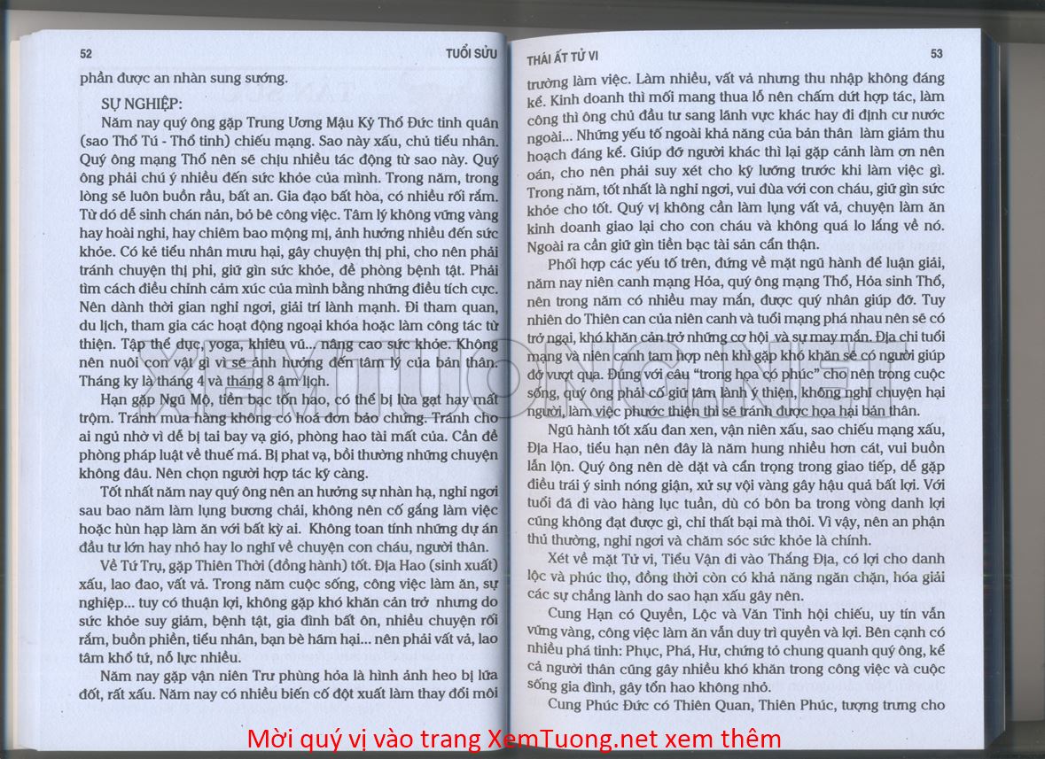 (Lưu ý: Thái Ất Tử Vi được chúng tôi scan từ sách, do đó mỗi tuổi sẽ có nhiều trang, quý vị xem xong hãy nhấn vào trang tiếp theo để xem hết phần tuổi muốn xem. Nếu quý vị xem bằng điện thoại thì hãy kéo qua lại để xem phần bị khuất.)