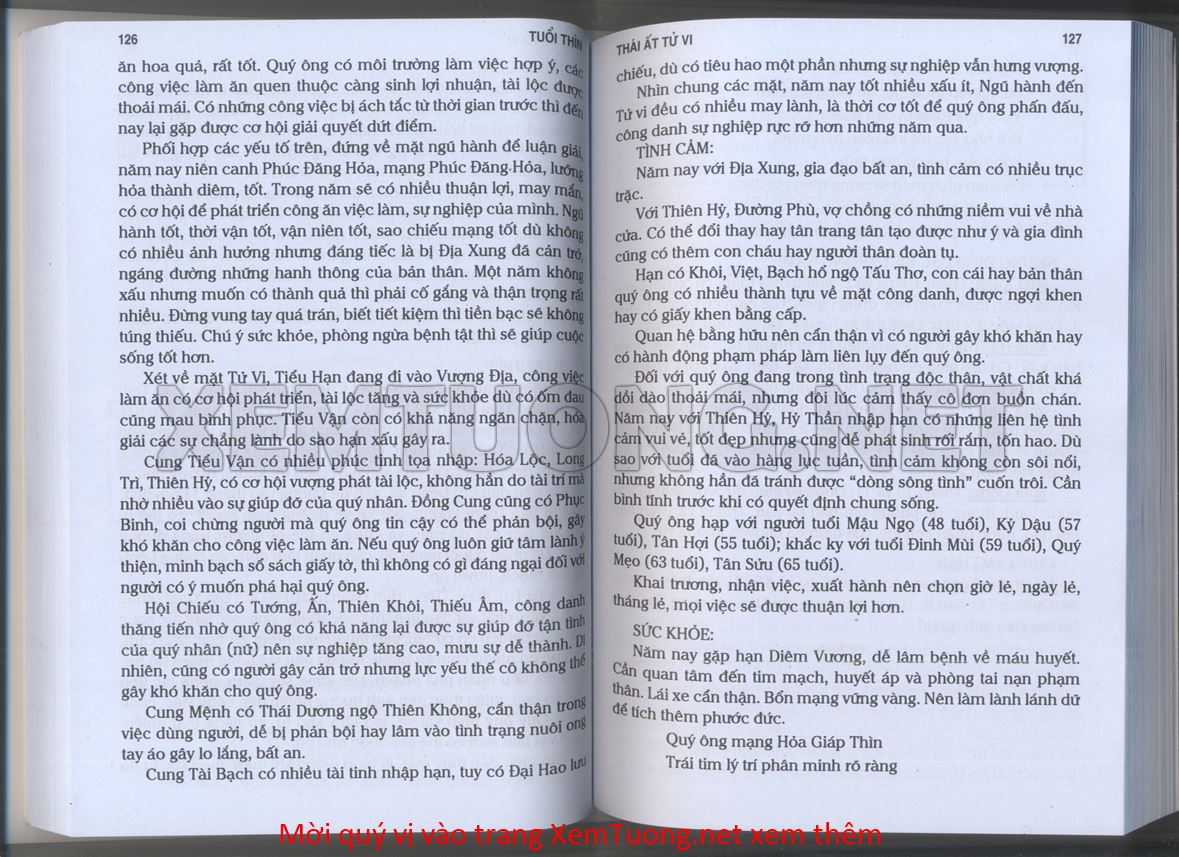 (Lưu ý: Thái Ất Tử Vi được chúng tôi scan từ sách, do đó mỗi tuổi sẽ có nhiều trang, quý vị xem xong hãy nhấn vào trang tiếp theo để xem hết phần tuổi muốn xem. Nếu quý vị xem bằng điện thoại thì hãy kéo qua lại để xem phần bị khuất.)