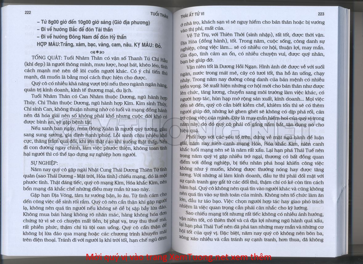 (Lưu ý: Thái Ất Tử Vi được chúng tôi scan từ sách, do đó mỗi tuổi sẽ có nhiều trang, quý vị xem xong hãy nhấn vào trang tiếp theo để xem hết phần tuổi muốn xem. Nếu quý vị xem bằng điện thoại thì hãy kéo qua lại để xem phần bị khuất.)