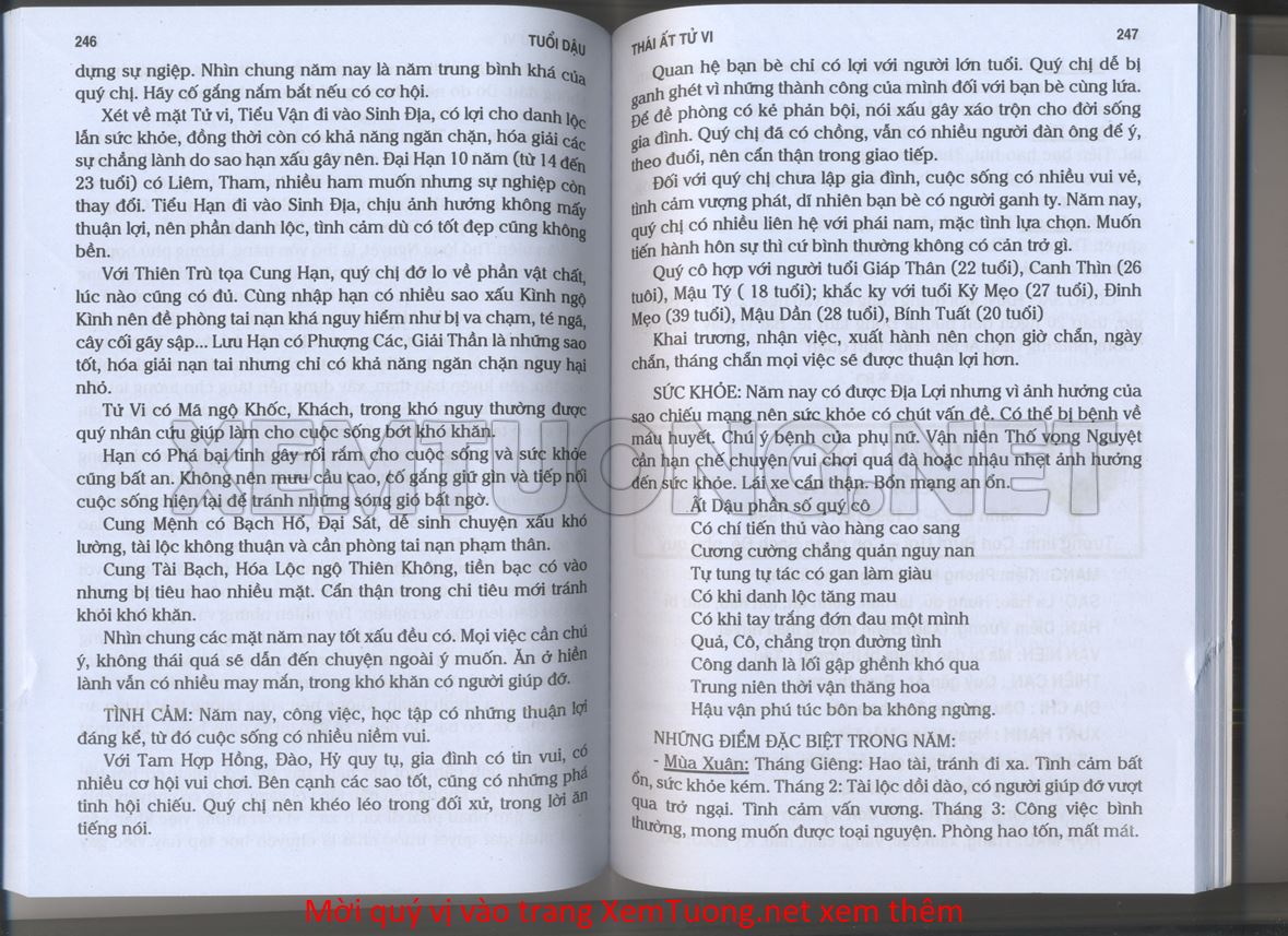 (Lưu ý: Thái Ất Tử Vi được chúng tôi scan từ sách, do đó mỗi tuổi sẽ có nhiều trang, quý vị xem xong hãy nhấn vào trang tiếp theo để xem hết phần tuổi muốn xem. Nếu quý vị xem bằng điện thoại thì hãy kéo qua lại để xem phần bị khuất.)