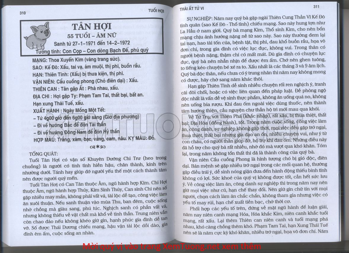 (Lưu ý: Thái Ất Tử Vi được chúng tôi scan từ sách, do đó mỗi tuổi sẽ có nhiều trang, quý vị xem xong hãy nhấn vào trang tiếp theo để xem hết phần tuổi muốn xem. Nếu quý vị xem bằng điện thoại thì hãy kéo qua lại để xem phần bị khuất.)
