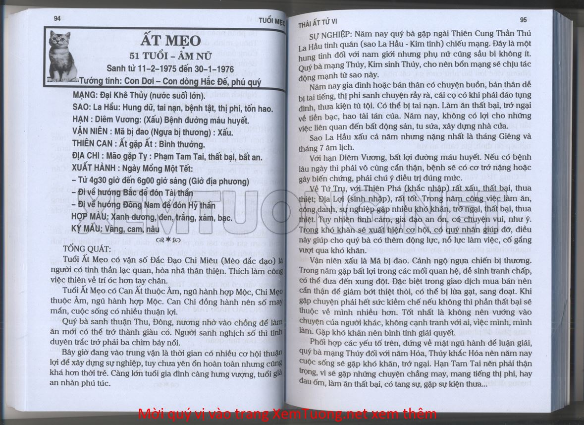 (Lưu ý: Thái Ất Tử Vi được chúng tôi scan từ sách, do đó mỗi tuổi sẽ có nhiều trang, quý vị xem xong hãy nhấn vào trang tiếp theo để xem hết phần tuổi muốn xem. Nếu quý vị xem bằng điện thoại thì hãy kéo qua lại để xem phần bị khuất.)
