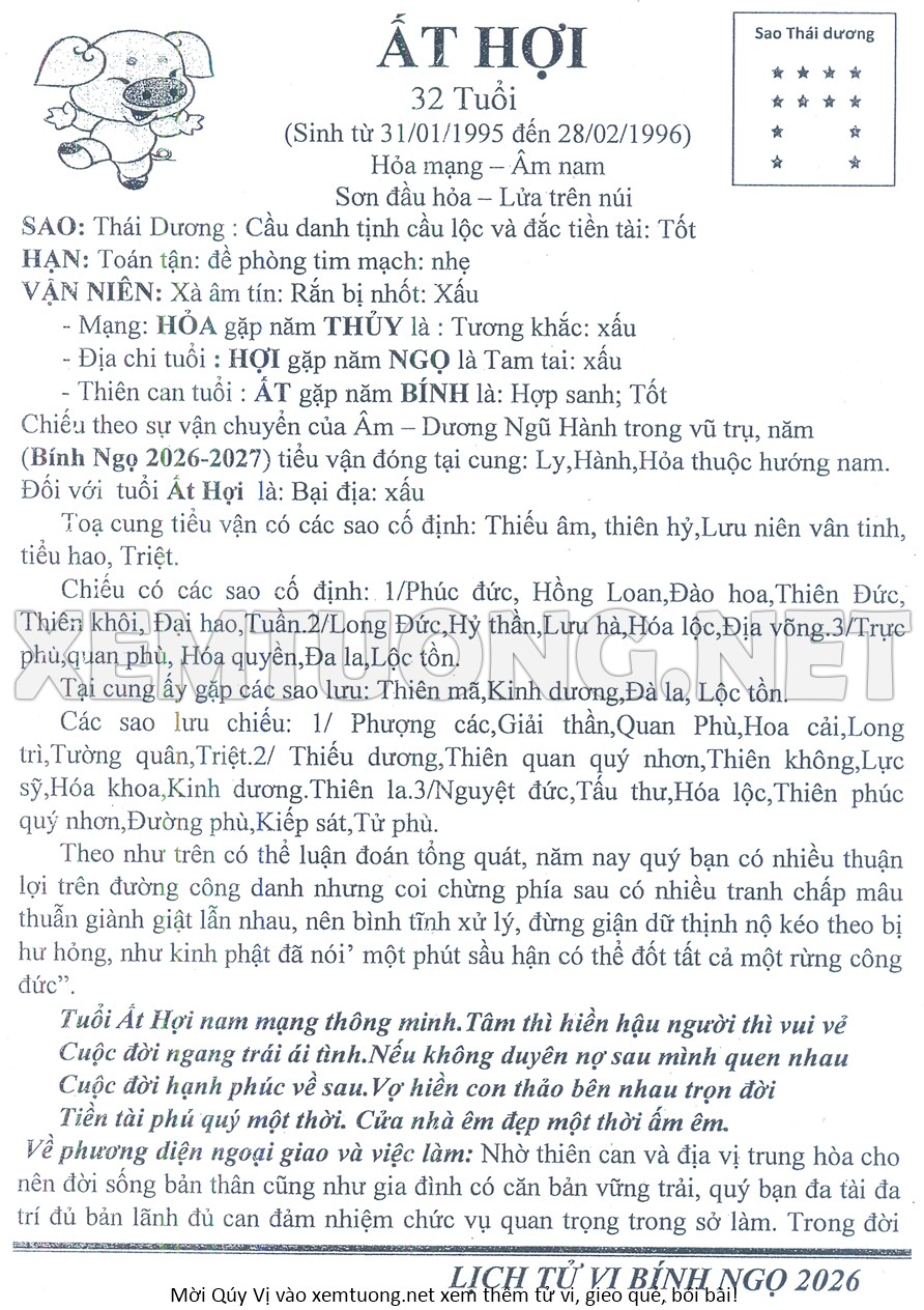 Tử Vi Năm Bính Ngọ 2026 mạng nam ẤT HỢI