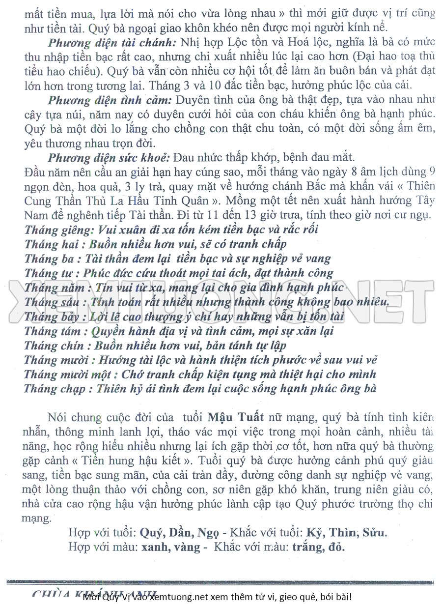 Tử Vi Năm Bính Ngọ 2026 mạng nữ MẬU TUẤT