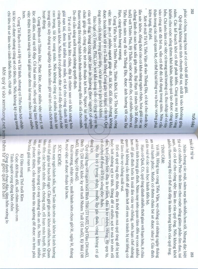 (Lưu ý: Thái Ất Tử Vi được chúng tôi scan từ sách, do đó mỗi tuổi sẽ có nhiều trang, quý vị xem xong hãy nhấn vào trang tiếp theo để xem hết phần tuổi muốn xem. Nếu quý vị xem bằng điện thoại thì hãy kéo qua lại để xem phần bị khuất.)