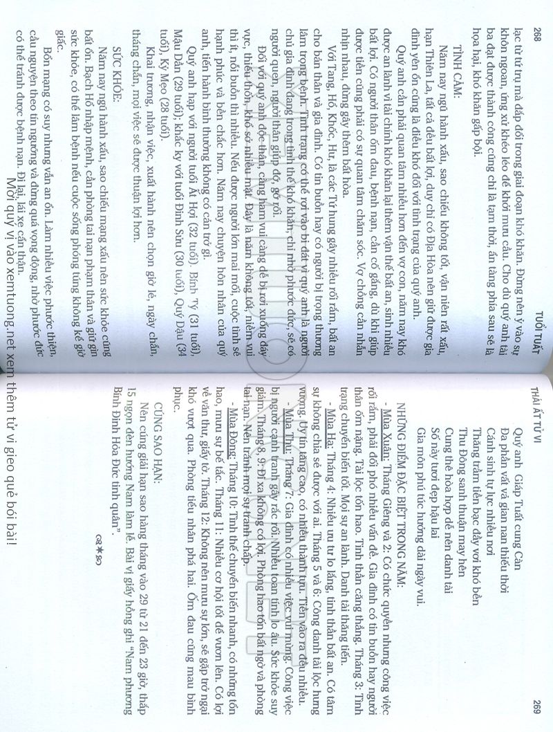 (Lưu ý: Thái Ất Tử Vi được chúng tôi scan từ sách, do đó mỗi tuổi sẽ có nhiều trang, quý vị xem xong hãy nhấn vào trang tiếp theo để xem hết phần tuổi muốn xem. Nếu quý vị xem bằng điện thoại thì hãy kéo qua lại để xem phần bị khuất.)