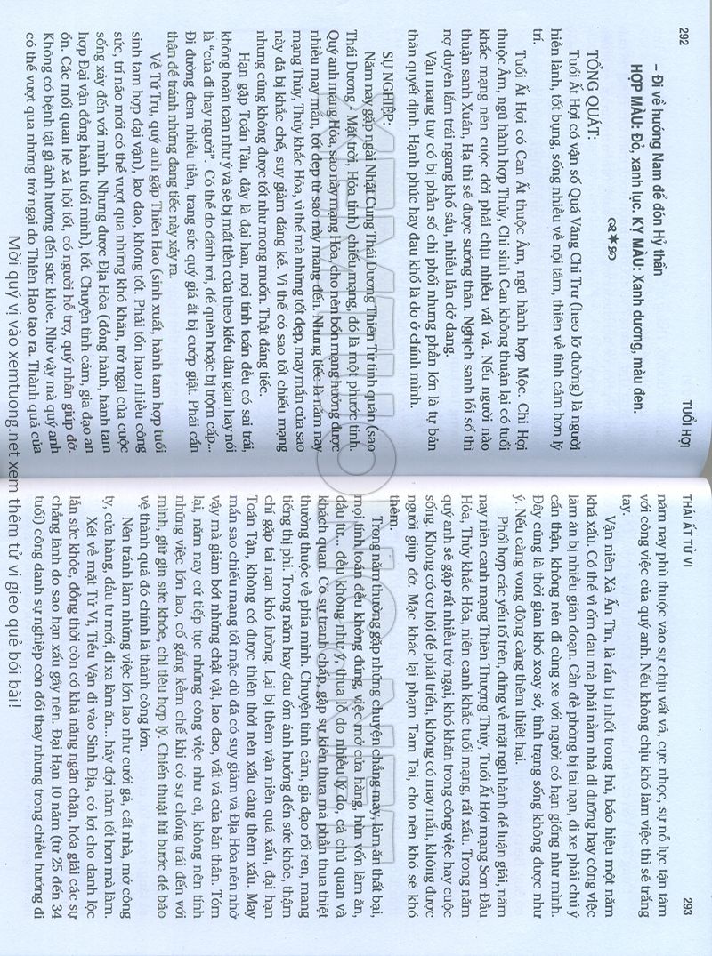 (Lưu ý: Thái Ất Tử Vi được chúng tôi scan từ sách, do đó mỗi tuổi sẽ có nhiều trang, quý vị xem xong hãy nhấn vào trang tiếp theo để xem hết phần tuổi muốn xem. Nếu quý vị xem bằng điện thoại thì hãy kéo qua lại để xem phần bị khuất.)