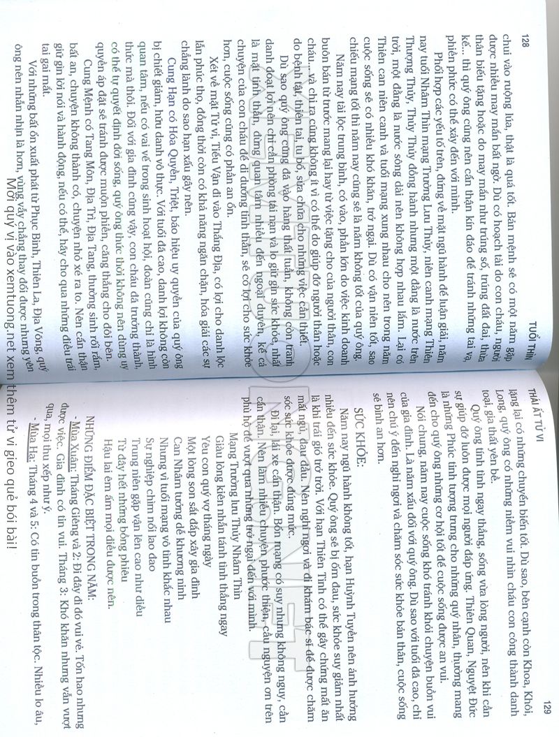 (Lưu ý: Thái Ất Tử Vi được chúng tôi scan từ sách, do đó mỗi tuổi sẽ có nhiều trang, quý vị xem xong hãy nhấn vào trang tiếp theo để xem hết phần tuổi muốn xem. Nếu quý vị xem bằng điện thoại thì hãy kéo qua lại để xem phần bị khuất.)